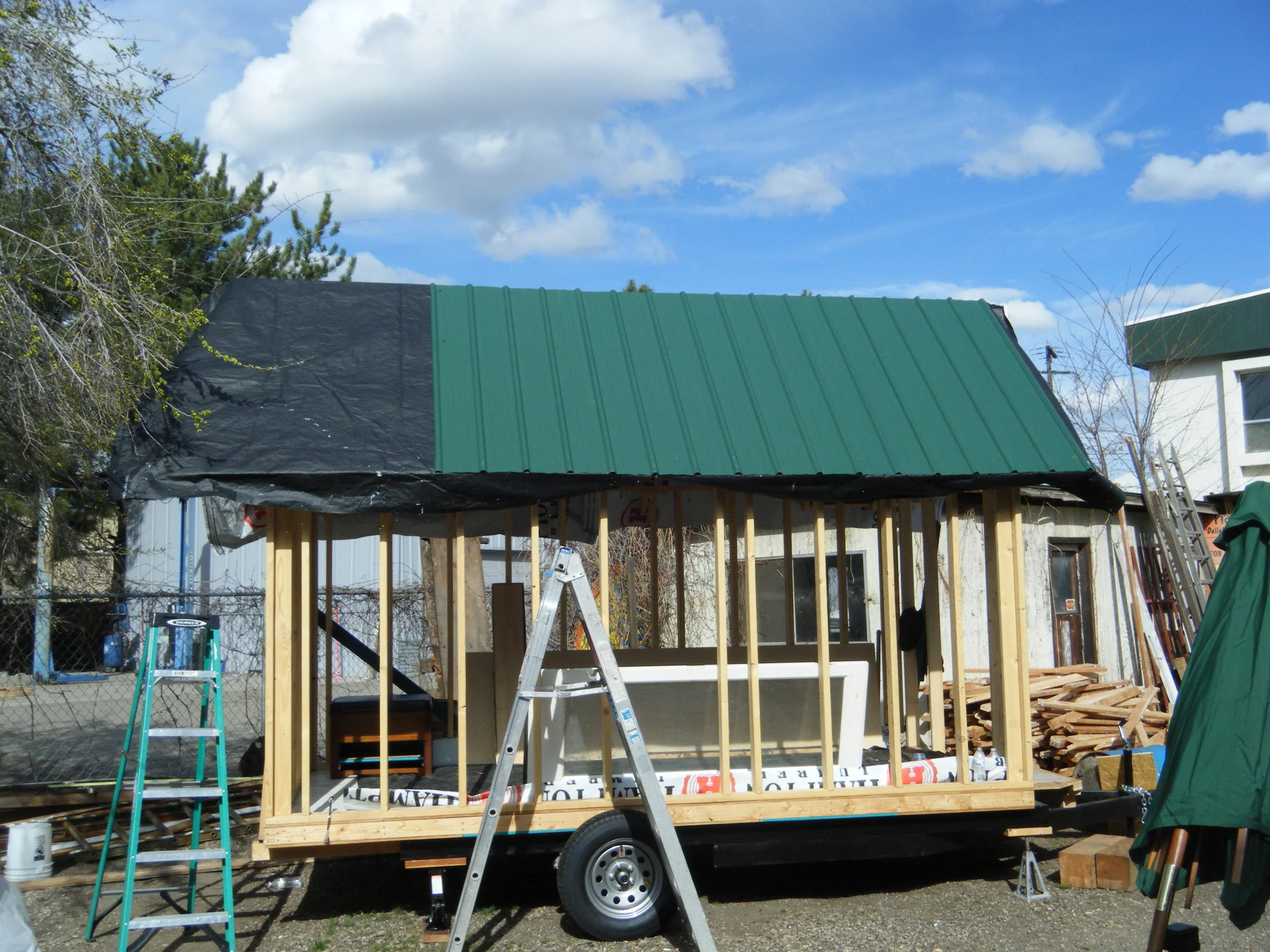 We set the goal of building tiny mobile houses for the homeless, and now our mission is becoming visible as we started the floor of the first tiny house this week. We used some recycled plywood to put on the underneath side. Check out our progress! We will keep you up-to-date as our project moves forward.